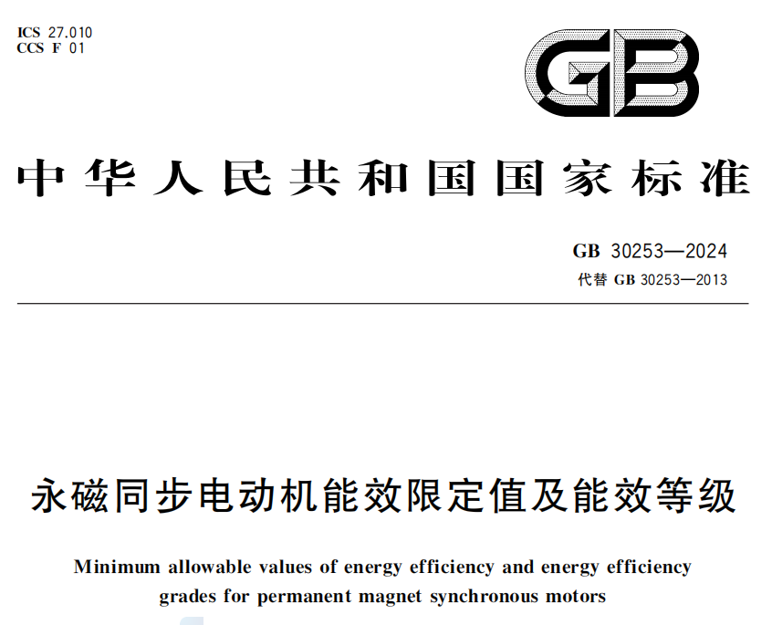 永磁同步電動機能效限定值及能效等級