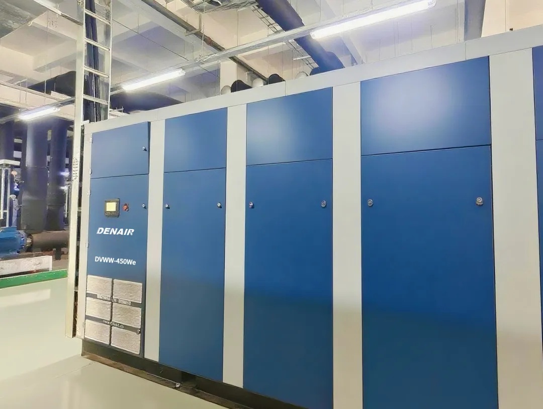 半導(dǎo)體制造車間內(nèi),設(shè)備 24 小時(shí)不間斷運(yùn)轉(zhuǎn),對空壓機(jī)的穩(wěn)定性、節(jié)能性以及散熱能力都提出了極高要求。普通空壓機(jī)難以在長時(shí)間高負(fù)荷運(yùn)行下,保持穩(wěn)定的供氣壓力和空氣質(zhì)量,還會(huì)產(chǎn)生高額的能耗成本。而德耐爾水冷變頻無油螺桿空壓機(jī),正是針對這些痛點(diǎn)研發(fā)的 “行業(yè)利器”。本次合作機(jī)型是6臺(tái)DVWW-450W和1臺(tái)DVWW-75W。
